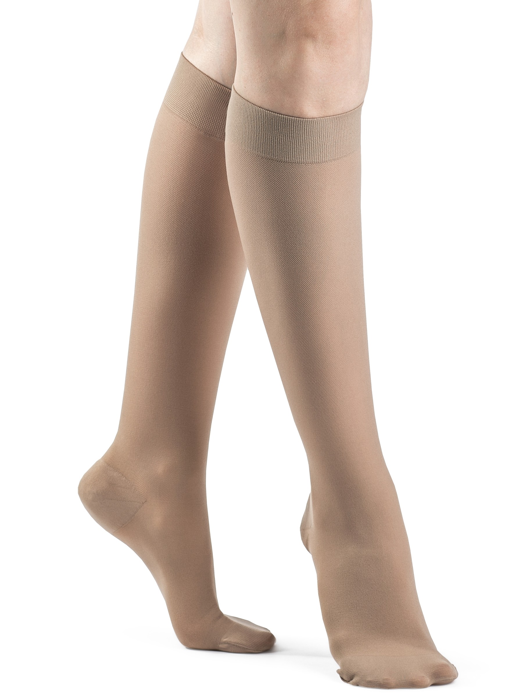 This traditionally designed hosiery features a reinforced heel area, a wide toe area and is designed to stay in place
